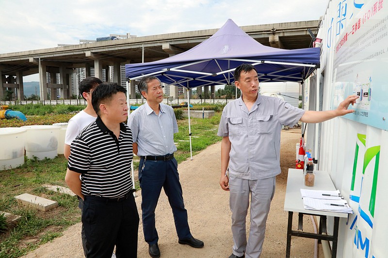 6月12日,陜西環(huán)保集團(tuán)黨委書(shū)記、董事長(zhǎng)熊良虎在集團(tuán)西安市江村溝垃圾滲濾液全流程處理中試項(xiàng)目視察調(diào)研時(shí)指出,大膽探索、科學(xué)組織、周密部署,立即開(kāi)展72小時(shí)連續(xù)運(yùn)行試驗(yàn),迅速組織召開(kāi)現(xiàn)場(chǎng)會(huì)推廣“正滲透(FO)系統(tǒng)+低溫蒸發(fā)結(jié)晶(LTEC)系統(tǒng)”處理技術(shù),徹底把垃圾滲濾液這個(gè)“最臟的水、最難的水”達(dá)標(biāo)處理好,為1300萬(wàn)西安市民營(yíng)造良好的生態(tài)環(huán)境。集團(tuán)公司總工程師顏昊一同調(diào)研。