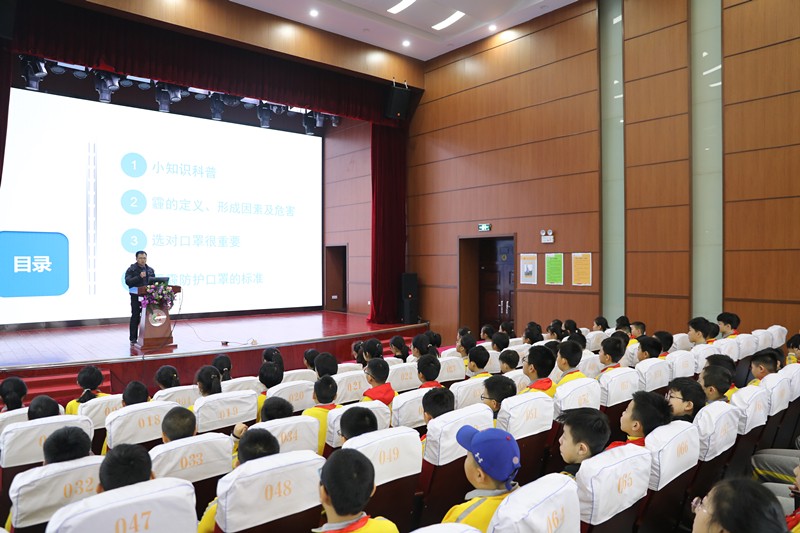 課堂上,研究院公司李永超博士生動(dòng)講解了霧霾的成因、危害與個(gè)人防護(hù)等知識(shí),并向?qū)W生們免費(fèi)發(fā)放了由研究院公司自主研發(fā)的新型靜電紡絲“納米纖維防護(hù)口罩”。學(xué)生們紛紛表示,要把自己學(xué)到的科普知識(shí)傳遞給身邊更多的人,用綠色出行等實(shí)際行動(dòng)參與環(huán)保。