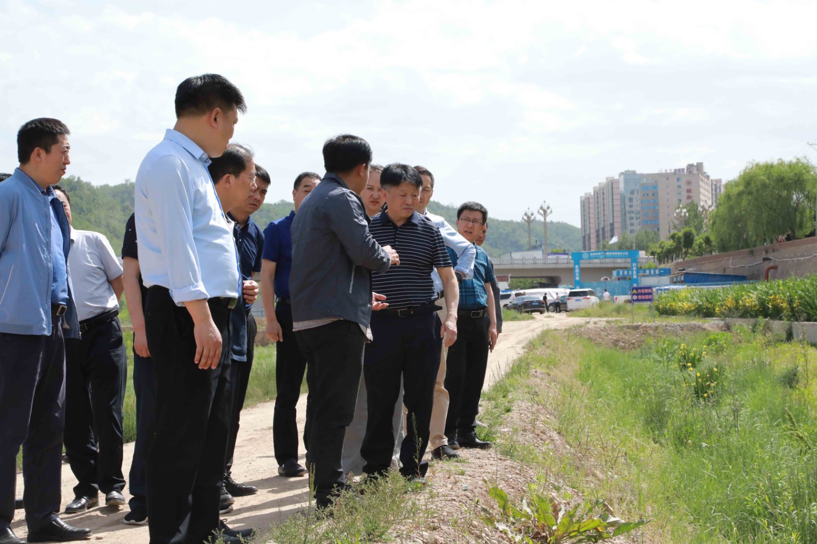 19日中午一到延安,熊良虎一行在看望慰問延安分公司干部職工后,便馬不停蹄來到生態(tài)公司延河陽柳橋至朱家溝段濕地修復工程項目,實地察看了項目施工進度、工程質量等,與施工人員就項目建設情況與市民群眾進行了深入交流。