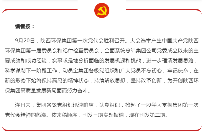 會議要求,一是要把學(xué)習(xí)貫徹集團黨代會精神,作為當前和今后一個時期的重要政治任務(wù),認真作出部署、深入組織學(xué)習(xí),切實把全員思想和行動統(tǒng)一到集團黨代會部署的各項目標任務(wù)上來。二是要把學(xué)習(xí)黨代會精神,尤其把是工作報告中提出的五個“一以貫之”落實到位,進一步明確公司目標、落實責任、鼓足干勁、真抓實干,真正把學(xué)習(xí)貫徹落實黨代會精神轉(zhuǎn)化為思想自覺和行動自覺,增強工作的自覺性、主動性和堅定性,高質(zhì)量完成公司發(fā)展各項任務(wù)。三是要以集團黨代會報告明確的未來五年發(fā)展目標任務(wù)為指引,對照公司戰(zhàn)略定位,緊盯提升公司運營管理水平,持續(xù)提高行業(yè)競爭地位,健全科技創(chuàng)新激勵機制,增強職工幸福指數(shù),搶抓機遇、主動出擊,為集團深入推進“五大布局”,聚焦公司主責主業(yè),打造環(huán)保融合發(fā)展大平臺。四是要積極對標對表,在深入推進全面從嚴治黨上持續(xù)發(fā)力,把堅持黨的領(lǐng)導(dǎo)、加強黨的建設(shè)作為第一要務(wù),以高質(zhì)量黨建引領(lǐng)公司高質(zhì)量發(fā)展再創(chuàng)新的輝煌。(崔凱)