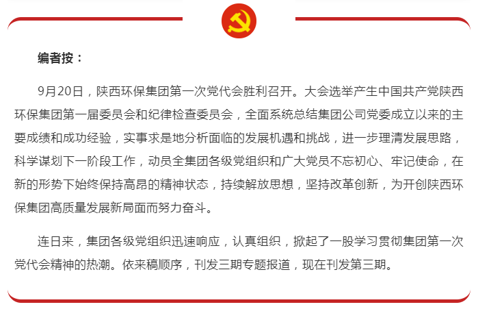 9月23日,三秦環(huán)保股份公司黨總支召開專題會議,傳達(dá)學(xué)習(xí)集團(tuán)第一次黨代會精神。