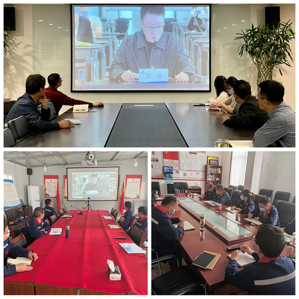 3月16日,集團(tuán)公司副總經(jīng)理劉強(qiáng)為秦邦公司、鼎豐礦業(yè)公司、秦楓公司傳達(dá)學(xué)習(xí)習(xí)近平總書記重要講話、全國兩會(huì)精神及近期疫情防控有關(guān)會(huì)議精神。劉強(qiáng)指出,要系統(tǒng)深入學(xué)習(xí)、深刻領(lǐng)會(huì)習(xí)近平總書記重要講話精神,充分認(rèn)識(shí)中國特色社會(huì)主義制度優(yōu)勢,堅(jiān)持增強(qiáng)“四個(gè)意識(shí)”、堅(jiān)定“四個(gè)自信”、做到“兩個(gè)維護(hù)”,完整準(zhǔn)確全面貫徹新發(fā)展理念,努力構(gòu)建新發(fā)展格局,推動(dòng)集團(tuán)高質(zhì)量發(fā)展取得新突破。劉強(qiáng)要求,要提高思想認(rèn)識(shí),保持高度警惕,清醒認(rèn)識(shí)當(dāng)前疫情防控嚴(yán)峻形勢,從嚴(yán)從緊抓好各項(xiàng)防控工作,堅(jiān)決守住疫情防控底線。要層層夯實(shí)責(zé)任,扎實(shí)做好基礎(chǔ)工作,進(jìn)一步加大防控力度,嚴(yán)格遵守“有事報(bào)告,無事報(bào)平安,緊急情況隨時(shí)上報(bào)”的工作要求,同時(shí)落實(shí)好辦公生產(chǎn)區(qū)域消殺、掃碼、測溫等常態(tài)化防控措施。集團(tuán)公司企業(yè)管理部負(fù)責(zé)同志等參加。(牛欣睿)李釗傳達(dá)會(huì)議精神 3月16日,集團(tuán)公司副總經(jīng)理李釗通過視頻會(huì)議的形式為油氣公司、智信公司傳達(dá)習(xí)近平總書記在全國兩會(huì)上的重要講話和全國兩會(huì)精神,安排部署疫情防控及穩(wěn)增長工作。李釗指出,習(xí)近平總書記在全國兩會(huì)上的重要講話,蘊(yùn)含深意、富有新意,具有很強(qiáng)的政治性、思想性、指導(dǎo)性、針對(duì)性,為集團(tuán)做好各項(xiàng)工作指明了前進(jìn)方向。通過學(xué)習(xí)習(xí)近平總書記重要講話精神,深刻理解把握“五個(gè)必由之路”的重要認(rèn)識(shí),深刻理解把握我國發(fā)展具有的“五個(gè)戰(zhàn)略性有利條件”,結(jié)合自身發(fā)展,銳意進(jìn)取,開拓創(chuàng)新,推動(dòng)集團(tuán)公司高質(zhì)量發(fā)展。李釗要求,一是要織密扎牢疫情防控網(wǎng),落實(shí)常態(tài)化疫情防控舉措。近期疫情防控形勢嚴(yán)峻。各單位要切實(shí)把思想和行動(dòng)統(tǒng)一到中省關(guān)于做好疫情防控工作的具體要求上來,嚴(yán)格落實(shí)集團(tuán)公司關(guān)于做好疫情防控的相關(guān)舉措。二是要強(qiáng)化安全環(huán)保責(zé)任落實(shí),筑牢安全環(huán)保管理基礎(chǔ)。要堅(jiān)決克服麻痹思想,突出抓好安全環(huán)保責(zé)任體系建設(shè),理清責(zé)任鏈條,擰緊責(zé)任螺絲,切實(shí)增強(qiáng)思想自覺和行動(dòng)自覺。三是要全力推進(jìn)項(xiàng)目建設(shè),多措并舉穩(wěn)定生產(chǎn)運(yùn)營。各單位要圍繞集團(tuán)公司下達(dá)的工作任務(wù)目標(biāo),尤其要重點(diǎn)關(guān)注投資進(jìn)度,快速做好任務(wù)計(jì)劃分解,有針對(duì)性地研究解決措施和辦法,堅(jiān)決做到疫情防控與生產(chǎn)經(jīng)營兩手抓、兩不誤,確保企業(yè)發(fā)展平穩(wěn)推進(jìn)。集團(tuán)公司安全環(huán)保部主要負(fù)責(zé)同志參加。(武白鈺)