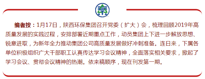 1月19日,環(huán)保公司召開(kāi)專(zhuān)題會(huì)議,傳達(dá)學(xué)習(xí)集團(tuán)公司黨委(擴(kuò)大)會(huì)精神。