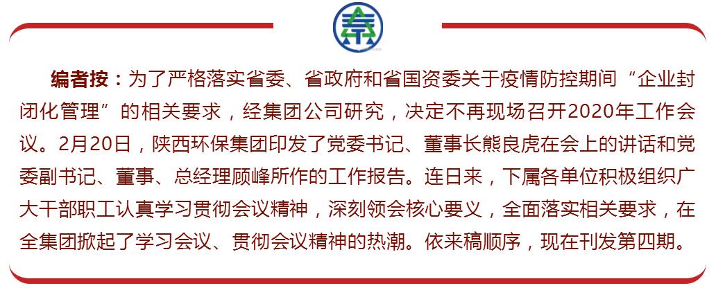 2月20日,集團(tuán)公司黨委書記、董事長熊良虎在集團(tuán)2020年工作會(huì)議上的講話和黨委副書記、董事、總經(jīng)理顧峰所作工作報(bào)告印發(fā)后,三秦環(huán)保股份公司突出“五個(gè)結(jié)合”,積極貫徹落實(shí)于具體工作之中。
