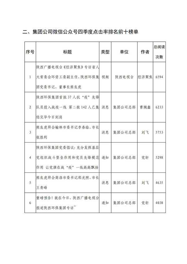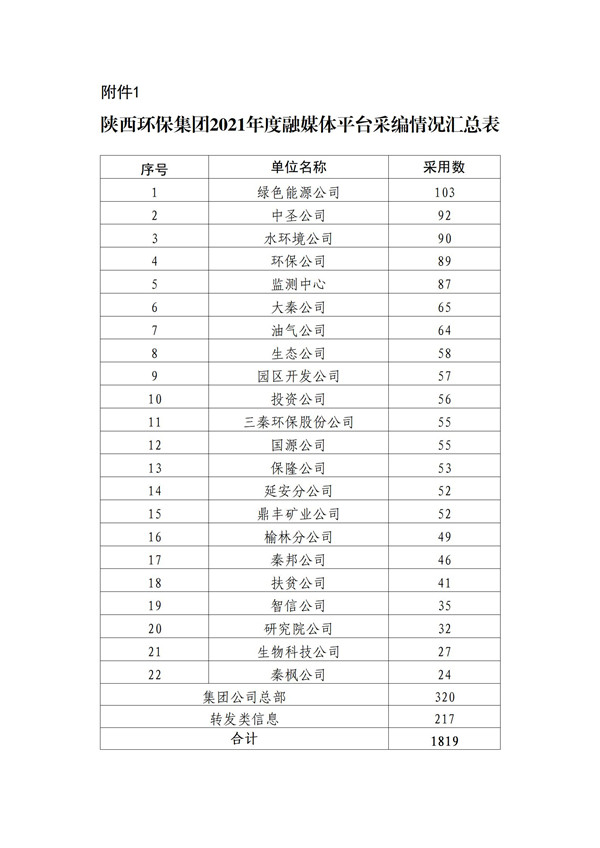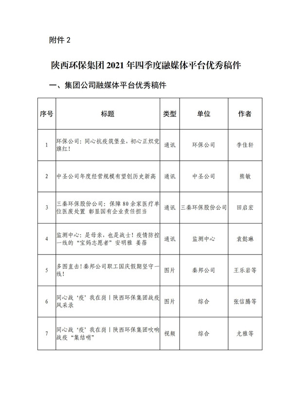 為加強(qiáng)集團(tuán)公司門戶網(wǎng)站、微信公眾號(hào)、新浪微博、視頻號(hào)等融媒體平臺(tái)的稿件采編工作,鼓勵(lì)廣大通訊員圍繞企業(yè)中心工作撰寫出高質(zhì)量的稿件,發(fā)揮優(yōu)秀稿件的示范作用,為集團(tuán)高質(zhì)量發(fā)展鼓與呼,按照集團(tuán)公司《關(guān)于建立政務(wù)信息采用情況通報(bào)和優(yōu)秀稿件評(píng)選制度的通知》(陜環(huán)司函〔2021〕31號(hào))文件要求,現(xiàn)將2021年度集團(tuán)公司融媒體平臺(tái)稿件采用及2021年四季度優(yōu)秀稿件評(píng)選情況通報(bào)如下: