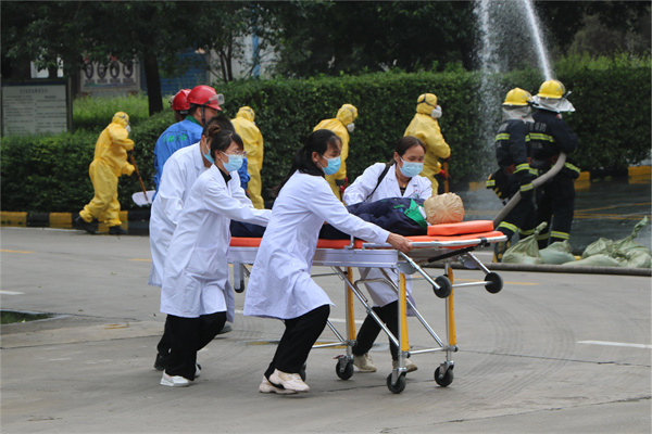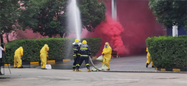 本次演練模擬工人不小心將堿性廢液倒入有機(jī)廢酸噸桶致使酸堿混合,噸桶內(nèi)發(fā)生化學(xué)反應(yīng),短時間內(nèi)大量放熱,達(dá)到有機(jī)廢酸燃點起火致突發(fā)環(huán)境事件企業(yè)、政府先后啟動應(yīng)急響應(yīng)全過程。