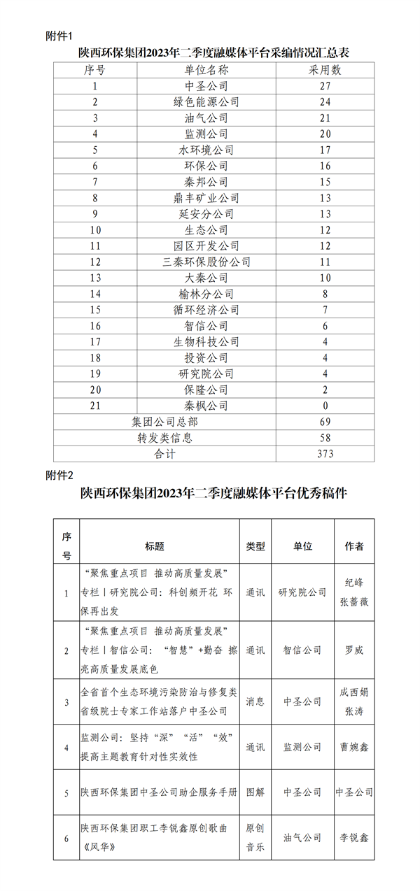 為進一步提高集團融媒體平臺稿件質量,有效發(fā)揮融媒體平臺服務企業(yè)高質量發(fā)展的作用,傳播時代精神,講好集團故事,現(xiàn)將2023年二季度集團公司融媒體平臺稿件采用及優(yōu)秀稿件評選情況通報如下:
