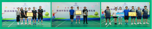 經(jīng)過激烈角逐,最終,中圣環(huán)境公司、集團(tuán)公司總部、生態(tài)建設(shè)公司、綠能-投資聯(lián)合隊(duì)、園區(qū)-秦邦聯(lián)合隊(duì)、鼎豐礦業(yè)公司等六支代表隊(duì)分別獲得混合團(tuán)體獎(jiǎng)前六名;大秦環(huán)境公司、油氣工程公司代表隊(duì)獲得體育道德風(fēng)尚獎(jiǎng);水環(huán)境公司、榆林分公司代表隊(duì)獲得最佳組織獎(jiǎng);三秦環(huán)保公司趙士滕、園區(qū)-秦邦聯(lián)合隊(duì)申文朔、高偉涵分別獲得男子單打冠、亞、季軍;中圣環(huán)境公司陳奕汝、延安-保隆聯(lián)合隊(duì)白玲、生態(tài)建設(shè)公司薛雅琪分別獲得女子單打冠、亞、季軍。