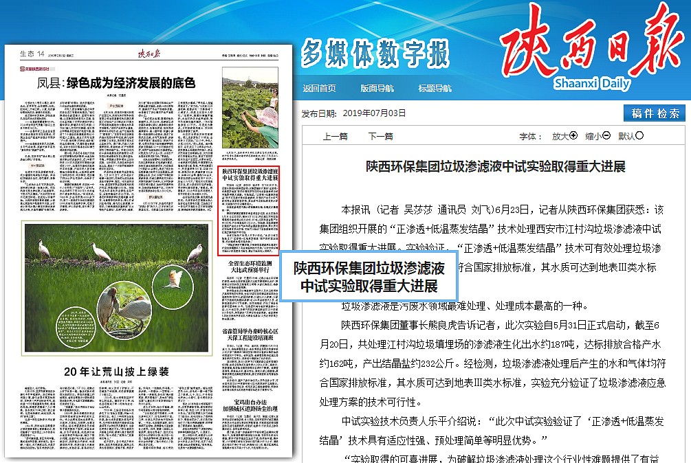 陜西環(huán)保集團(tuán)董事長(zhǎng)熊良虎告訴記者,此次實(shí)驗(yàn)自5月31日正式啟動(dòng),截至6月20日,共處理江村溝垃圾填埋場(chǎng)的滲濾液生化出水約187噸,達(dá)標(biāo)排放合格產(chǎn)水約162噸,產(chǎn)出結(jié)晶鹽約232公斤。經(jīng)檢測(cè),垃圾滲濾液處理后產(chǎn)生的水和氣體均符合國(guó)家排放標(biāo)準(zhǔn),其水質(zhì)可達(dá)到地表Ⅲ類(lèi)水標(biāo)準(zhǔn),實(shí)驗(yàn)充分驗(yàn)證了垃圾滲濾液應(yīng)急處理方案的技術(shù)可行性。