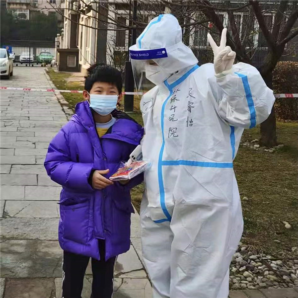誰說女子弱不禁風(fēng),誰說女子不如男。不懼疫情,堅定逆行的背影中也有“娘子軍”的身影。吳睿怡,一名1996年出生的女孩,她每天的工作是在電子城街道紫薇城市花園社區(qū),協(xié)助進行核酸檢測的掃碼登記、秩序維護及民生保障物資的發(fā)放,她說:“在排查到小區(qū)里有獨居老人、身體不便的老人,子女因疫情不在身邊的,我們都給多發(fā)了一份免費菜。每天搬菜雖然很累,但是看到大家的笑臉,我很欣慰,渾身充滿干勁。最感動的是在今天寒冷的早晨,有小朋友給我們送來了暖寶寶貼,讓我體會到了最真摯的善良。我相信在黨和政府的領(lǐng)導(dǎo)下,大家眾志成城,全力以赴,我們必將成功戰(zhàn)勝疫情,向陽而生!”