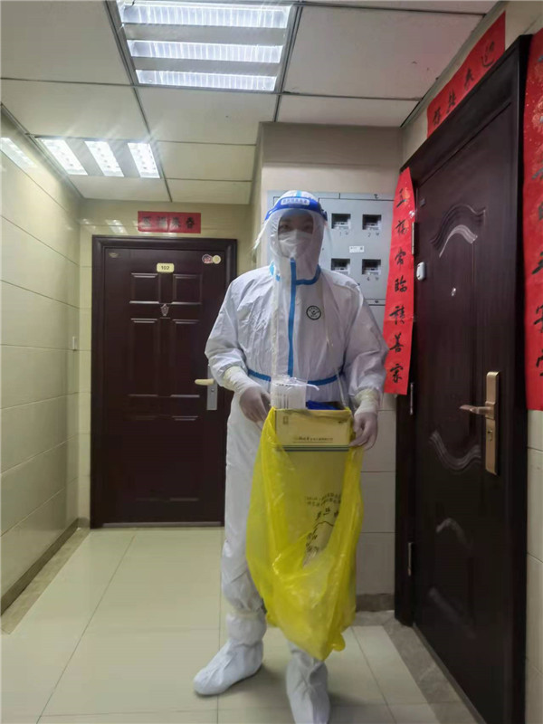 每天不知道要敲多少門,爬多少次樓的宋俊,用挨家挨戶的方式排查居民健康,對居民的需求第一時間上報給社區(qū),當夜晚疲憊的他卸下防護服的時候,手上臉上都是一條條無私奉獻的痕跡,疫情期間,他累計錄入人員信息4000余人次,分發(fā)蔬菜300余戶,在他看來,疫情就是命令,也是他身為一名黨員“為人民服務”的堅定信念,哪里有困難,哪里就有志愿者無私奉獻的身影。