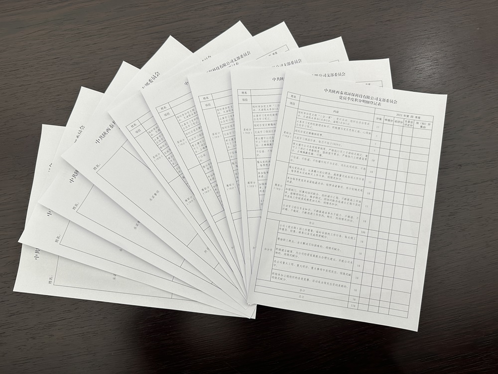 2023年以來,秦邦公司黨支部對黨員教育管理工作進行不斷創(chuàng)新探索,制定《黨員積分管理辦法》,形成了一套制度化、常態(tài)化的工作機制。黨員積分明細主要由基礎(chǔ)分、履職分及獨立加分項,共3大類15項操作有序、評定嚴肅的考核指標組成。采取“黨員自主申報、黨小組初評、黨支部核定、公開欄公示”的四級管理模式,切實增強黨支部對黨員評價管理的真實性、直觀性。同時公司將黨員積分結(jié)果作為黨支部標準化規(guī)范化建設(shè)工作的重中之重,采取善則賞之、過則匡之的具體措施強化結(jié)果運用。通過一系列舉措,黨支部形成了優(yōu)秀黨員添動力,落后黨員有壓力的良好奮進局面。